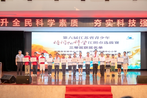 经过精彩激烈的比拼,江阴市璜塘实验小学摘得头筹,获得了第六届江苏省青少年“诗词里的科学”总决赛参赛资格,并与江阴市大桥中心小学同获一等奖。江阴市青阳实验小学、江阴高新区山观实验小学、江阴市北漍中心小学获得二等奖,其余5支学校队伍获得三等奖。
