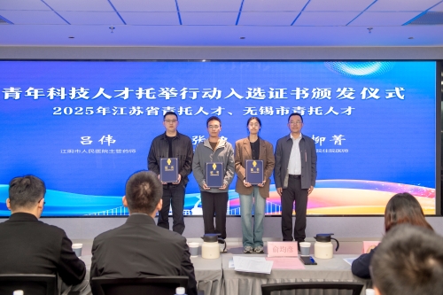江阴市科技局党组副书记、副局长李罗娜,江阴市科协党组副书记、副主席任陈芳共同为2025年江阴市青年科技人才托举行动入选者颁发入选证书。