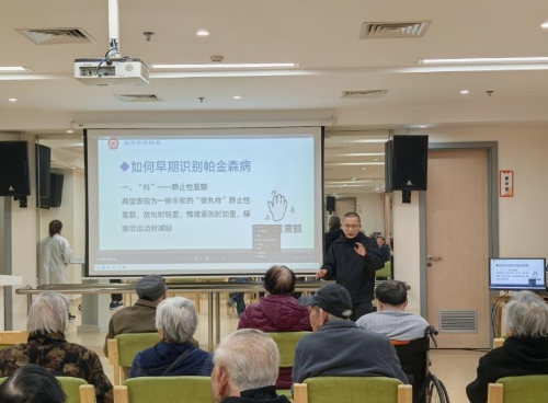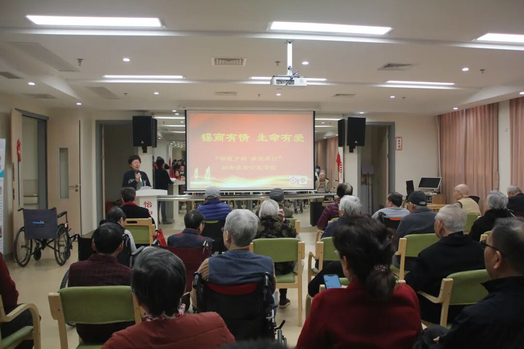 市生命关怀协会和市锡商公益基金会的领导及相关人员陪同老人们一起听科普讲座
